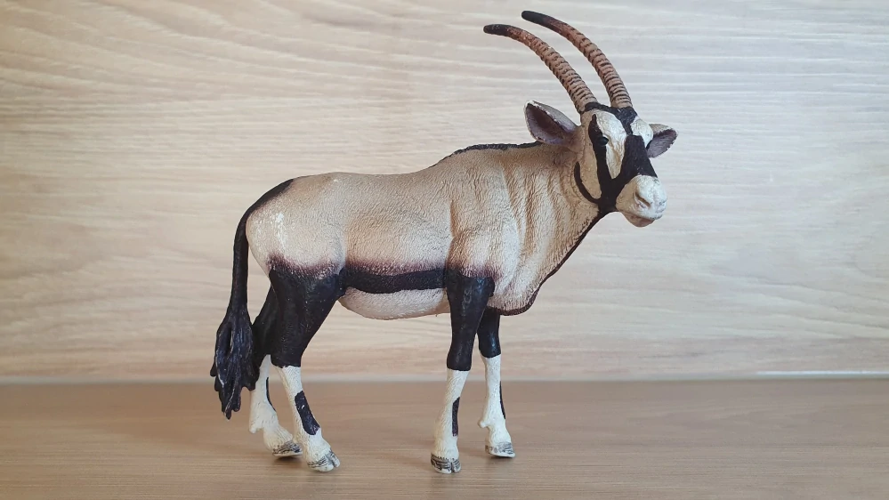 Schleich 14759 antilopa Oryx, odřeniny. Rok výroby vyznačený na zvířátku: 2015. Jedná se o použité zboží. Kupujete přesně to, co je na fotkách. Fotografie jsou autentické.