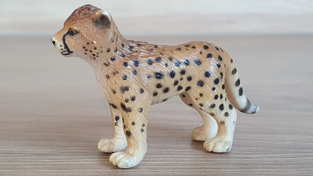 Schleich 14327 gepard, odřeniny. Rok výroby vyznačený na zvířátku: 2003, oficiální ukončení prodeje: 2016. Jedná se o použité zboží. Kupujete přesně to, co je na fotkách. Fotografie jsou autentické.