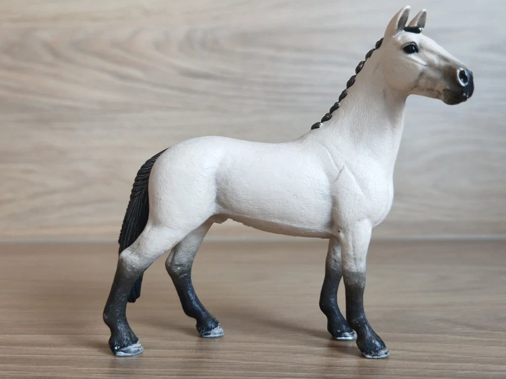 Schleich 13928 Hanoverský valach, odřeniny. Rok výroby vyznačený na zvířátku: 2016, oficální ukončení prodeje: . Jedná se o použité zboží. Fotografie jsou autenické.