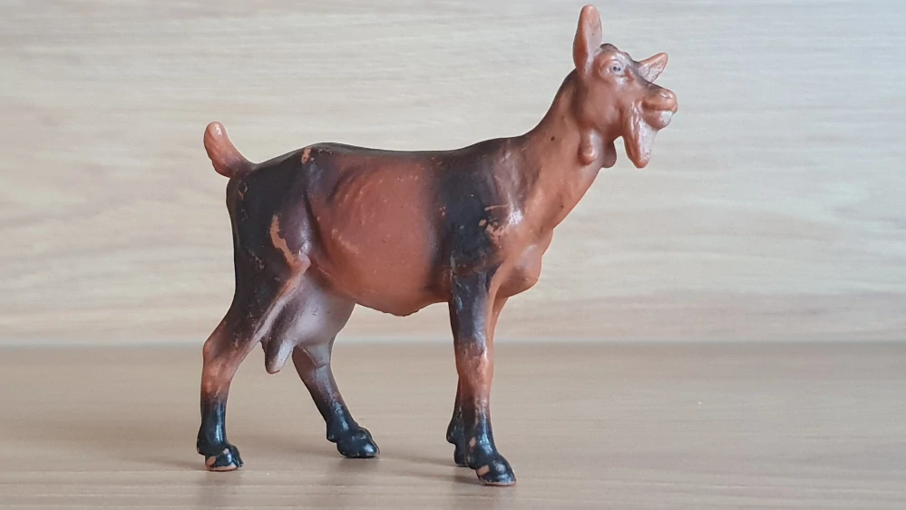 Schleich 13102 koza, hodně odřený. Rok výroby vyznačený na zvířátku: 1984, oficiální ukončení prodeje: 1992. Jedná se o použité zboží. Kupujete přesně to, co je na fotkách. Fotografie jsou autentické.