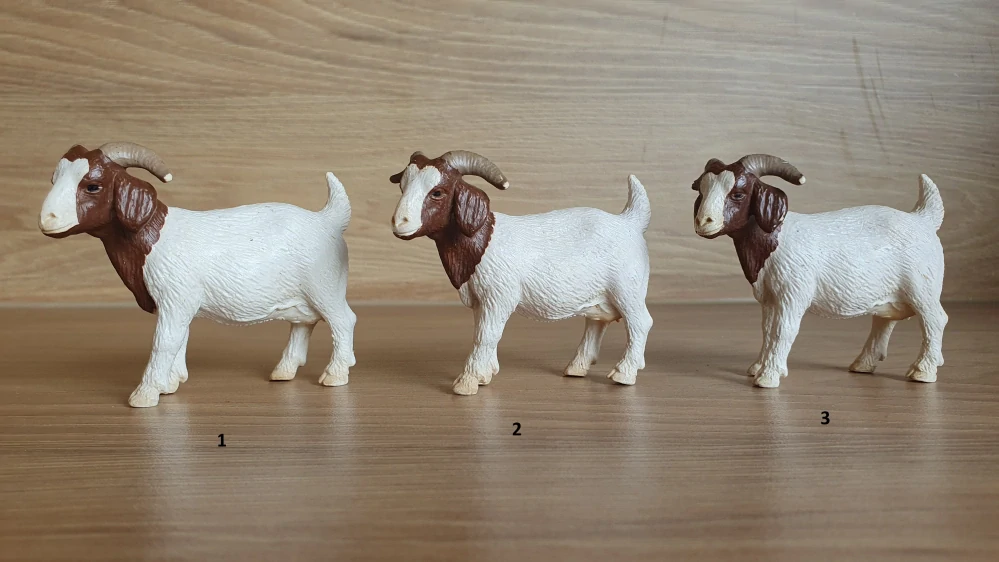 Schleich 13259 Koza burská, stav jednotlivých modelů se liší a odpovídá fotografii a rozlišení cen. Rok výroby vyznačený na zvířátku: 2001, oficální ukončení prodeje: 2009. Jedná se o použité zboží. Fotografie jsou autenické.