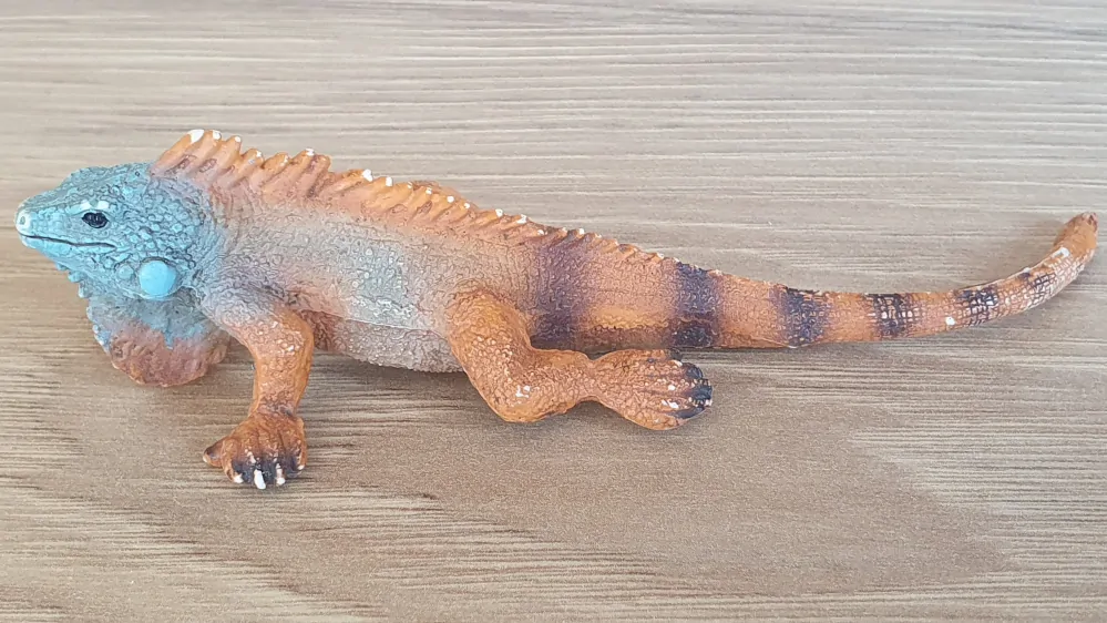 Schleich 14854 Leguán, pěkný stav. Rok výroby vyznačený na zvířátku: 2021. Jedná se o použité zboží. Kupujete přesně to, co je na fotkách. Fotografie jsou autentické.