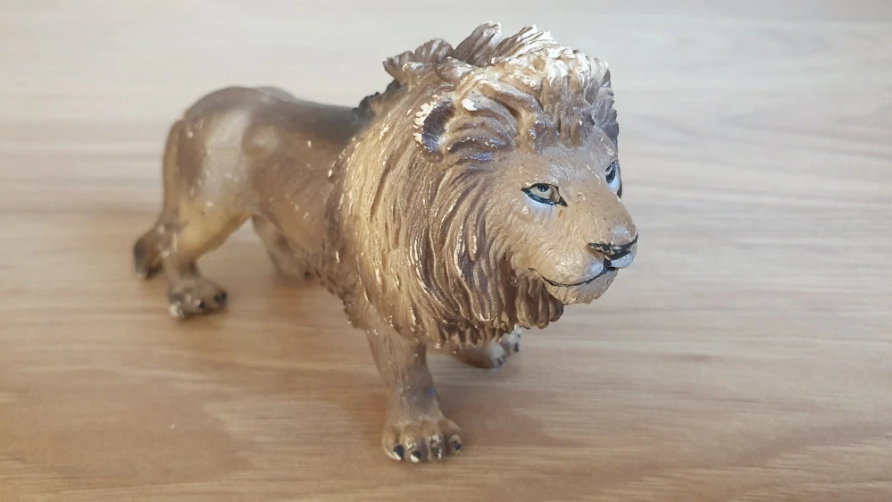 Schleich 14137 lev, hodně odřený. Rok výroby vyznačený na zvířátku: 1996, oficiální ukončení prodeje: 2005. Jedná se o použité zboží. Kupujete přesně to, co je na fotkách. Fotografie jsou autentické.