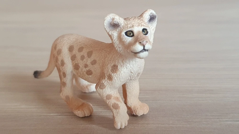 Schleich 14813 lvíče, odřeniny. Rok výroby vyznačený na zvířátku: 2017. Jedná se o použité zboží. Kupujete přesně to, co je na fotkách. Fotografie jsou autentické.