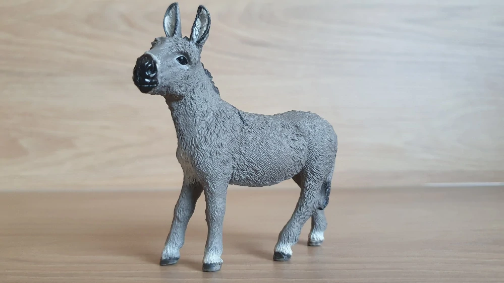 Schleich 13772 osel, jako nová. Rok výroby vyznačený na zvířátku: 2014. Jedná se o použité zboží. Kupujete přesně to, co je na fotkách. Fotografie jsou autentické.