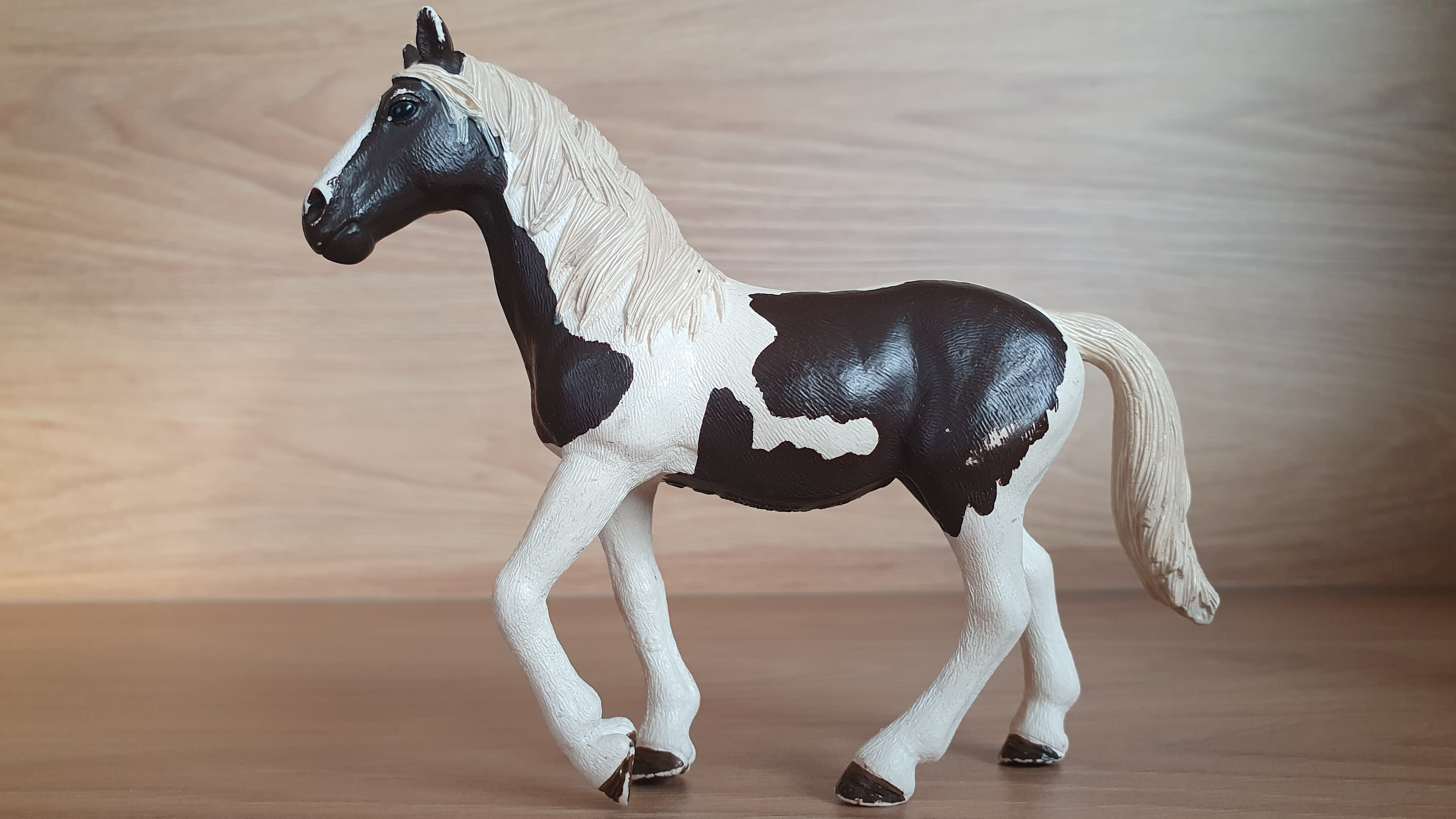 Schleich 13830 Pinto klisna, hodně odřený. Rok výroby vyznačený na zvířátku: 2016, oficální ukončení prodeje: . Jedná se o použité zboží. Fotografie jsou autenické.