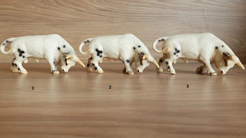 Schleich 13613 Rodeo býk, stav jednotlivých modelů se liší a odpovídá fotografii a rozlišení cen. Rok výroby vyznačený na zvířátku: , oficální ukončení prodeje: 2010. Jedná se o použité zboží. Fotografie jsou autenické.