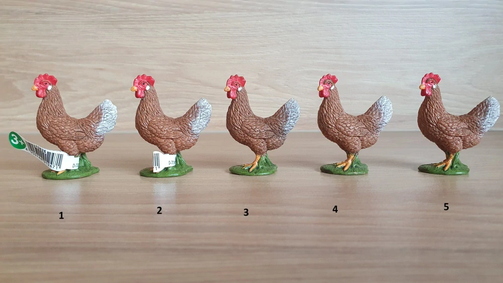 Schleich 13826 slepice, pěkný stav. Rok výroby vyznačený na zvířátku: 2016. Jedná se o použité zboží. Kupujete přesně to, co je na fotkách. Fotografie jsou autentické.