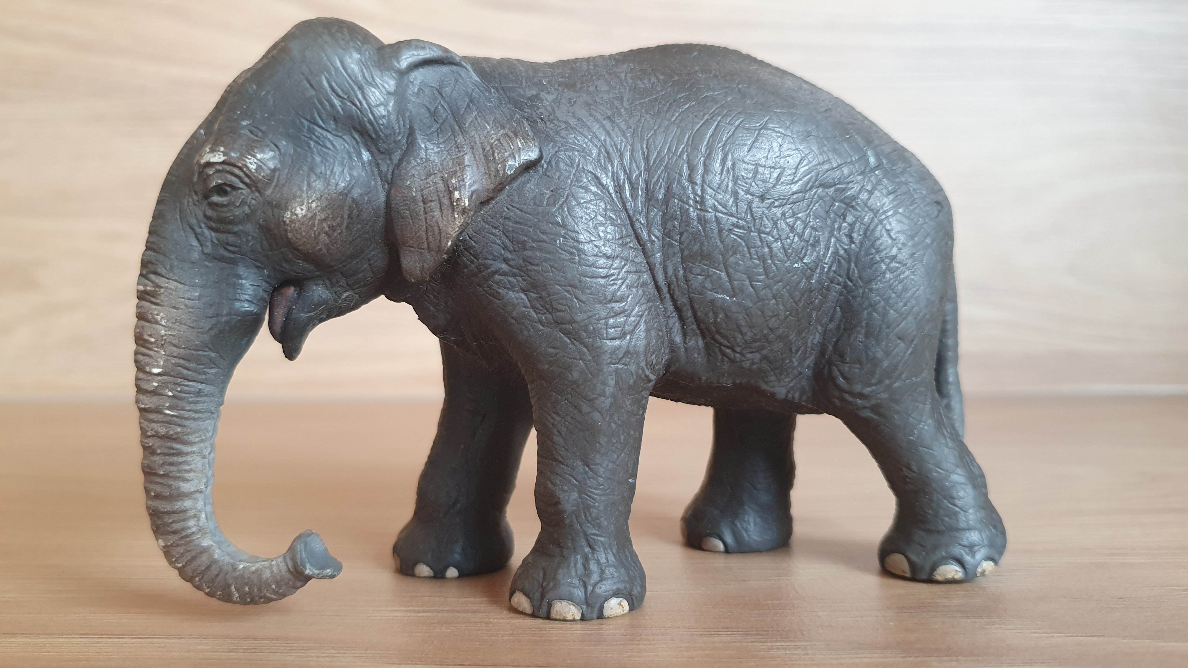 Schleich 14344 slon, odřeniny. Rok výroby vyznačený na zvířátku: 2004, oficiální ukončení prodeje: 2012. Jedná se o použité zboží. Kupujete přesně to, co je na fotkách. Fotografie jsou autentické.