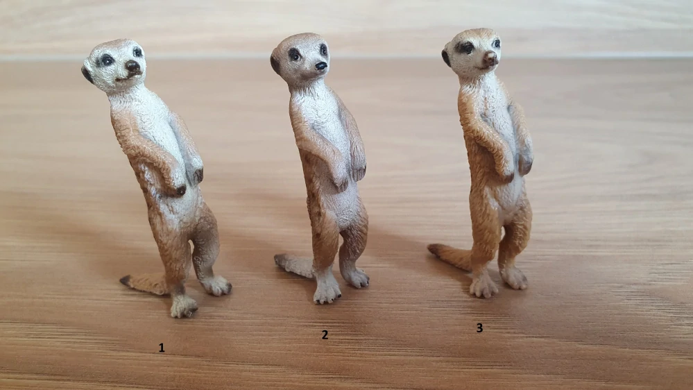 Schleich 14368 surikata, stav jednotlivých modelů se liší a odpovídá fotografii a rozlišení cen. Rok výroby vyznačený na zvířátku: 2006, oficální ukončení prodeje: 2016. Jedná se o použité zboží. Fotografie jsou autenické.