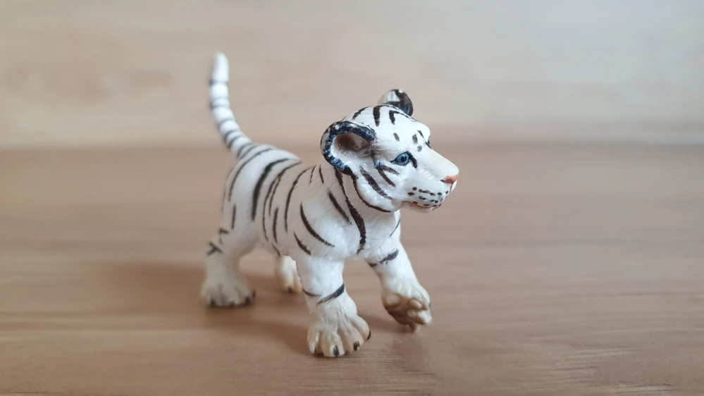 Schleich 14353 tygr bílý, odřeniny. Rok výroby vyznačený na zvířátku: 2003, oficiální ukončení prodeje: 2008. Jedná se o použité zboží. Kupujete přesně to, co je na fotkách. Fotografie jsou autentické.