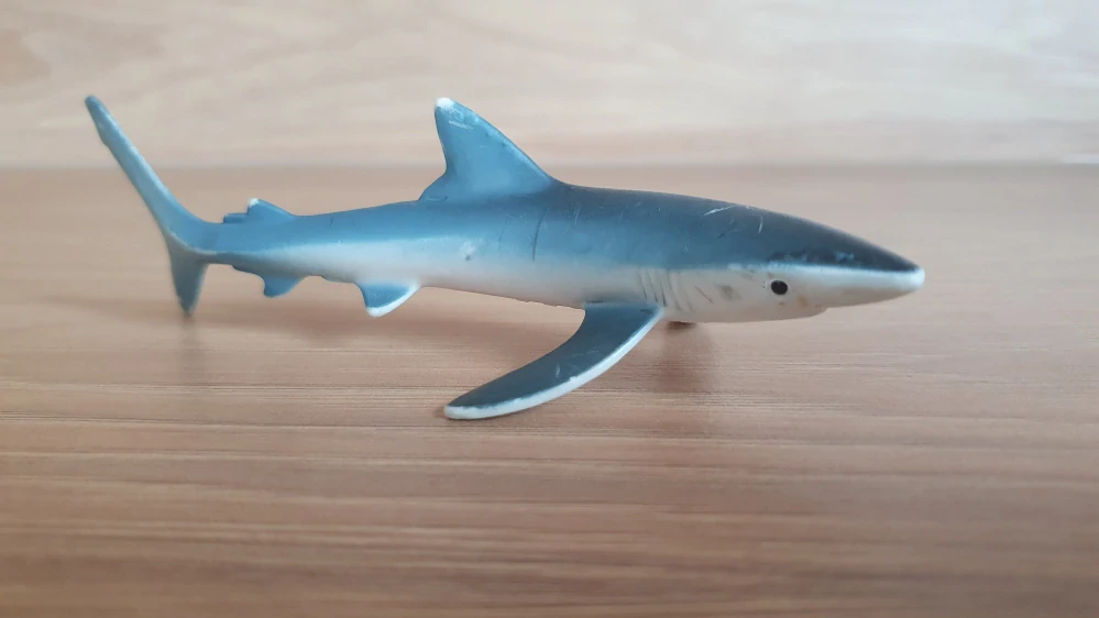 Schleich 14550 žralok modrý, hodně odřený. Rok výroby vyznačený na zvířátku: 2004, oficiální ukončení prodeje: 2009. Jedná se o použité zboží. Kupujete přesně to, co je na fotkách. Fotografie jsou autentické.
